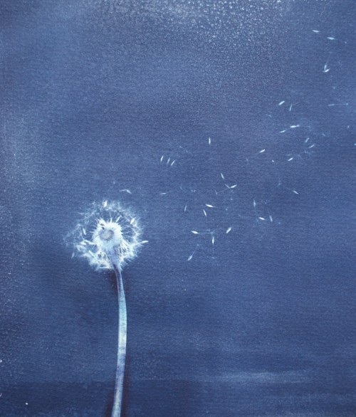 I am making the artists book that I have spoken about before, I want to use cyanotypes of dandelions for the cover and end sheets and have been waiting for them to appear so I can experiment. Finally a spell of uncharacteristically warm weather has kicked nature into action and never ones to miss out, dandelions have begun to embroider the fields around my house. Its a little early for them to turn into clocks but I managed to find one on my first ‘expedition’ and I carried it carefully back in the palm of my hand. I am not sure if it was the hour long walk in the sun or seeing life bursting out around me but I felt a hell of a lot better on my way back than when I started. Life really is hope